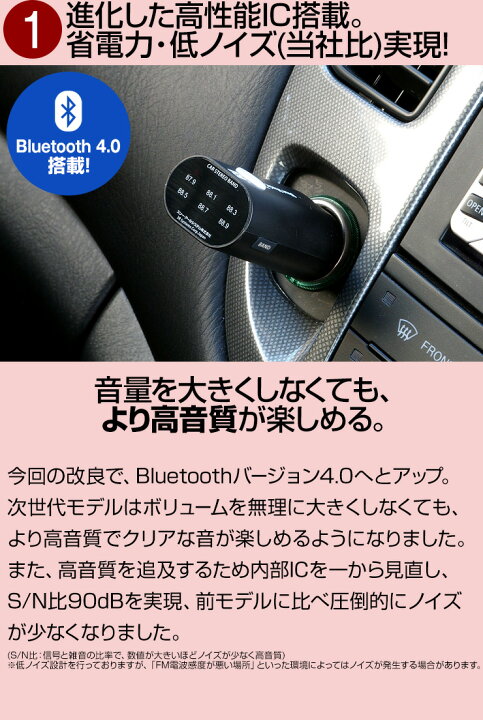 車内から飛ばしているFM電波を車で拾うのでノイズはほぼ皆無。 音質もBluetoothで繋ぐのと変わりない位なので問題なし。 充電なう。 FMトランスミッターには電源ボタンがありません。音声信号の入力が無いまま60秒間経過すると自動的に電源が切れます。 1つ目として、このように 電気的なノイズを発生する部品+その配線の近くに配置されていることによる機器内部回路内へのノイズ混入 が音質低下理由として考えられます。 このような電気的なノイズの問題に関しては、クルマの限られた車室内スペース 米Bose(ボーズ)は、車内に伝わる走行騒音ロードノイズを軽減する音響技術「QuietComfort Road Noise Control」を発表しました。 ボーズのノイズキャン
